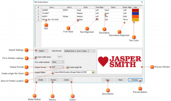 Text Automation can parse your spreadsheet to automatically populate and generate your stitch files for you.