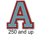 This font utilized a normal fill center section (first color) followed by a satin border. This effect is common on athletic wear and sports wear